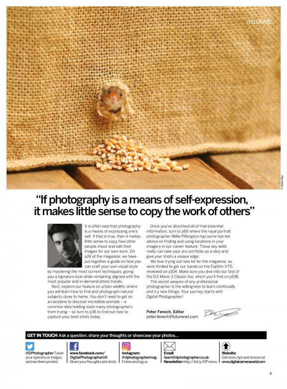 The digital photography magazine for enthusiasts and professionals launched in 2002, Digital Photographer is the ultimate monthly photography magazine, delivering indispensable, practical and hands-on shooting advice. Aimed at digital enthusiasts and professional photographers, Digital Photographer features the latest high-end kit reviews, expert interviews, practical shooting advice and image-editing tutorials to help you become a better photographer. We also showcase a selection of images from DP readers every month – the ideal launch pad for your career. Please note: Digital versions of the magazines do not include the cover mount items or supplements that you would find on printed editions.