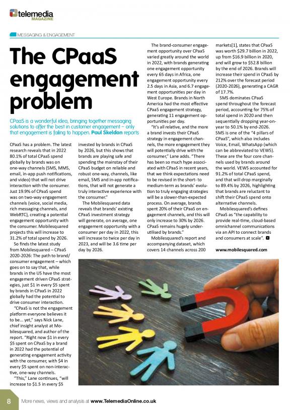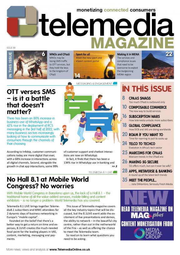 Telemedia Magazine is for any business that wishes to engage and commercialize “connected consumers” using mobile devices to respond or interact with value added services, premium content and applications. We report on how carrier billing and other alternative payment platforms continue to evolve and, in partnership with Service Providers and Aggregators – form part of the “Telemedia” value chain which is typically underpinned by minutes, messages and traffic. Published in print and online; essential reading for Merchants, Media and Content Owners – who want seamless micropayment solutions and engagement tools; that can immediately convert sales across the globally expanding range of Media, Affiliate and Advertising networks.