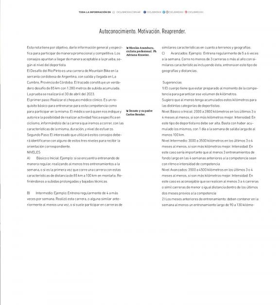 La revista que mes a mes refleja toda la actividad del ciclismo argentino, latino e internacional en todas sus modalidades.