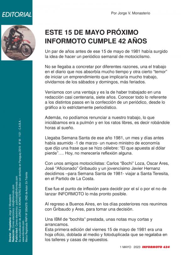 Revista líder del motociclismo argentino y latinoamericano. Mas de 40 años de vigencia. La publicación de la moto y de los motociclistas profesionales y amateurs.