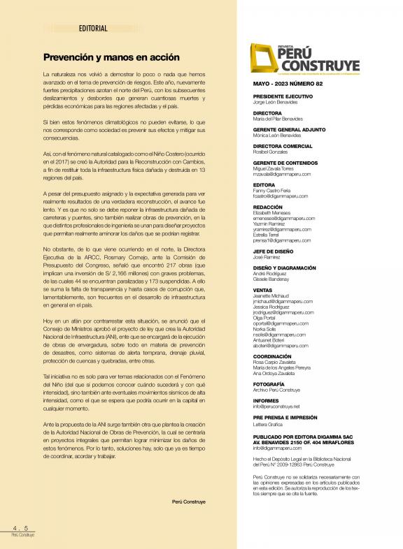 PERÚ CONSTRUYE es la revista que refleja la actividad de la construcción en Perú