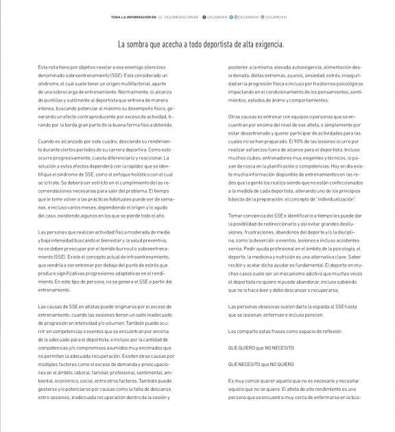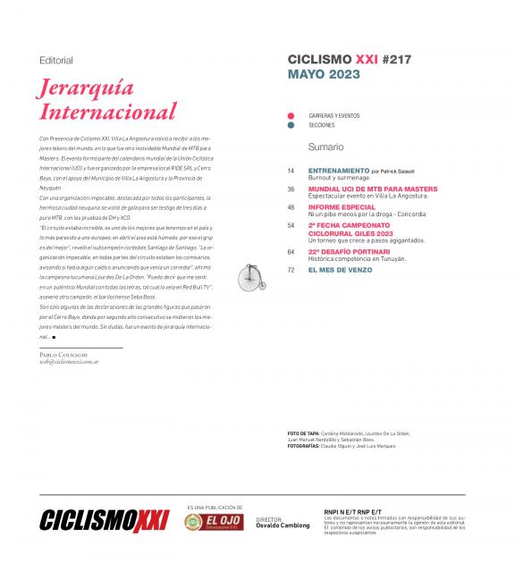 La revista que mes a mes refleja toda la actividad del ciclismo argentino, latino e internacional en todas sus modalidades.