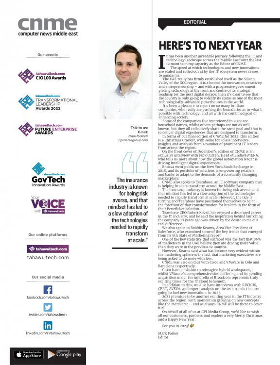 For any serious IT player in the Middle East, there are key market sectors that are easy to list – government, energy, banking, education, health, hospitality and so on. One key question is how do you use your marketing spend effectively to reach and influence the key decision makers in these markets? Plan and influence their strategies? For two decades, Computer News Middle East (CNME) has been the link between the regional IT player and these key target markets. It has driven the messages of local relevance, business benefit and technology into focus for these decision makers. The magazine covers all the important market sectors in depth, combining interviews, best practice case studies, news analysis and market trends through focused sections. Add to this analysis of global news, exclusive interviews with global IT players from Silicon Valley to Taipei and you have an authoritative route to market.