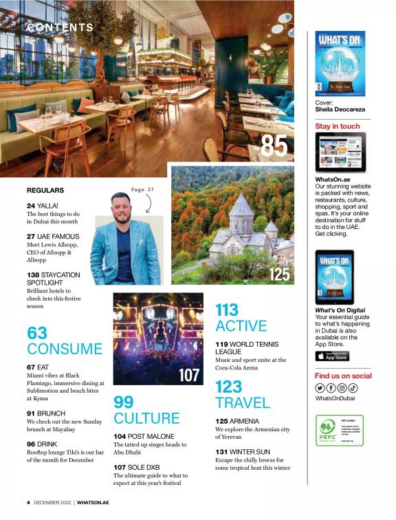 Stylish, Contemporary, Informed, Inspirational and Fun. Aimed at people looking to make the most of their time in the UAE. What’s On is packed with expert opinion, insider info, news, reviews, competitions and much more. What’s On provides in-depth coverage, strong emphasis on eating out, it is design driven, and has a strong credible entertainment guide.