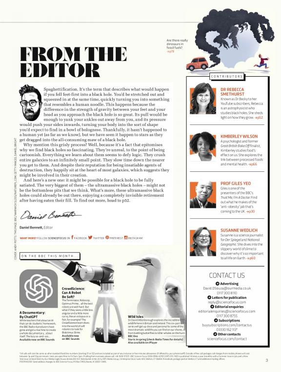 BBC Focus Magazine is the magazine of popular science and technology that explains the wonders of the Universe through stunning photography and accessible articles. Contributors include the very best writers and science experts, with columns every issue from renowned science writer Robert Matthews, TV presenter and scientist Helen Czerski, and science fiction author Stephen Baxter. From archaeology to neuroscience, climate change and particle physics, BBC Focus Magazine keeps you up to speed with the cutting-edge science and gadgets that will change our world.