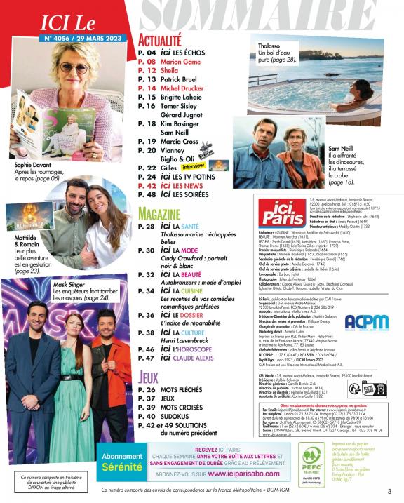 Le magazine Ici Paris vous fait partager la vie publique et privée de celles et ceux qui font l'actualité : exclusivités, interviews, enquêtes (la face cachée du showbiz, les coulisses de la télé) indiscrétions, potins.