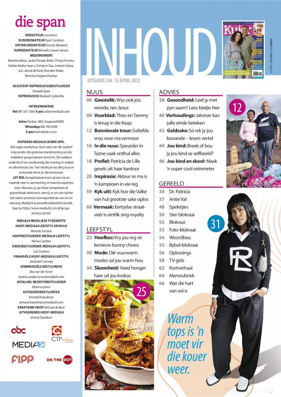 Kuier gee raad oor alles van ouerskap, geldsake, verhoudings en gesondheid tot mode, skoonheid, dekor en kos. Die tydskrif deel inspirerende stories oor mense in die gemeenskap en streef daarna om lesers op te hef en te bemagtig deur die klem te plaas op positiewe stories en suksesvolle rolmodelle. Die projekte is grootliks gemeenskapgebaseerd, met die visie om waarlik ’n verskil in lesers se lewens te maak.