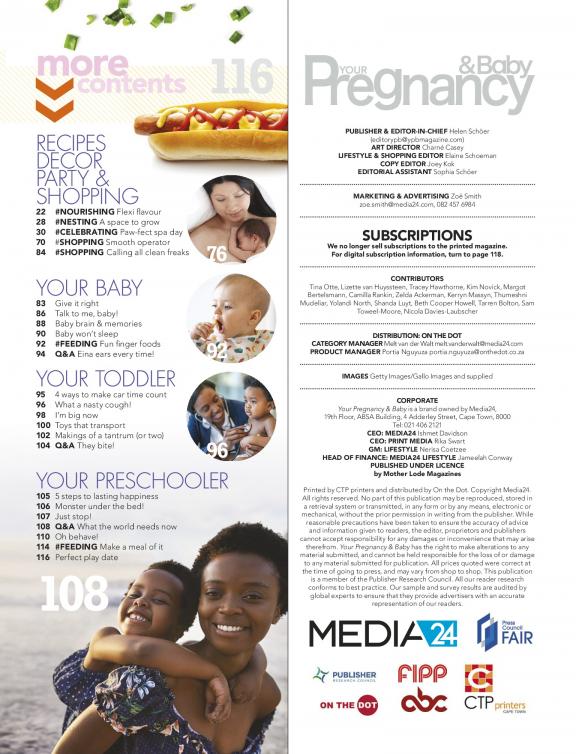 Your Pregnancy is the only local magazine that offers relevant, credible and accurate information on all aspects of pregnancy. Its local and international experts answer all questions quickly and respectfully. The magazine acknowledges pregnant women’s need to look and feel good. They are concerned about their baby’s health and wellness, but also care about their own. The magazine provides all the info that’s needed, as well as the latest fashion and beauty trends, health issues and exercises. It covers all aspects of pregnancy. The team loves what it does – and it shows.