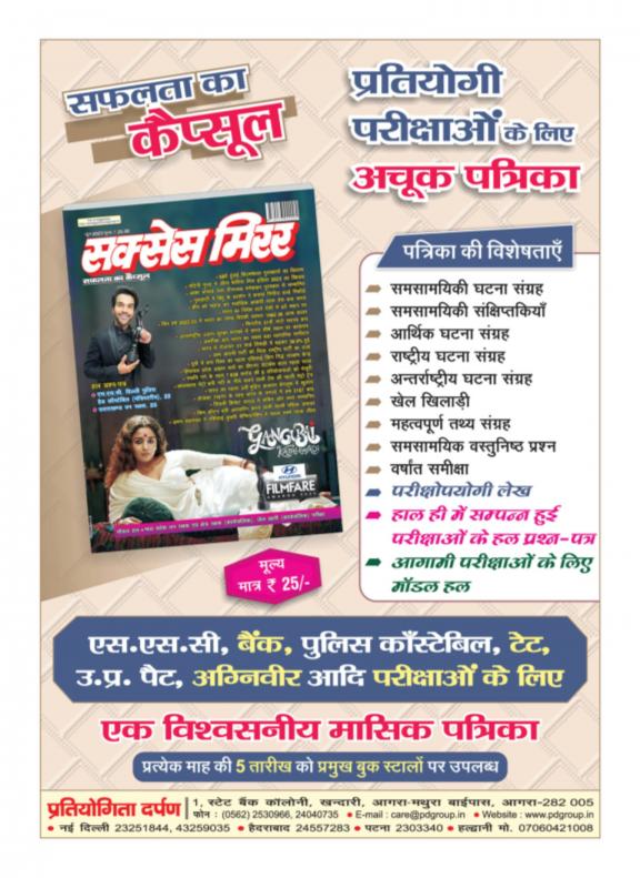 Samanya Gyan Darpan is a Hindi magazine that provides information on general knowledge, history, geography, science, and other topics. The magazine was first published in 1980 and is still one of the most popular general knowledge magazines in India. Samanya Gyan Darpan features a variety of articles each month, including: * General knowledge questions: This section asks general knowledge questions on a variety of topics. * Subject-based articles: This section publishes informative articles on a particular subject. * Special issues: This section publishes special issues on a particular topic, such as history, geography, science, or others. Samanya Gyan Darpan is a valuable resource for students, competitive exam aspirants, and the educated public in general. The magazine can help you learn about the world and increase your knowledge.