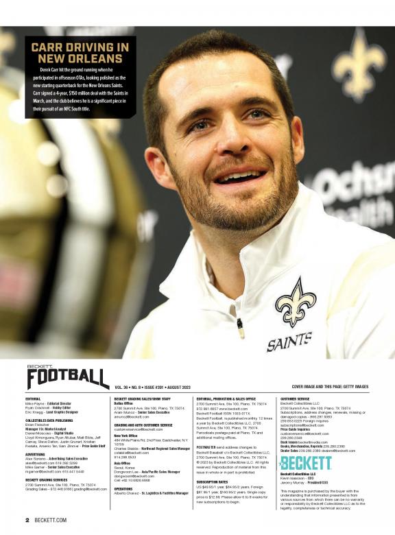 Dive into the exciting world of football collectibles and memorabilia with Beckett Football Magazine. We're thrilled to introduce you to this publication, your go-to source for all things related to football cards, collectibles, and the vibrant hobby of football memorabilia. Beckett Football Magazine, published by Beckett Collectibles LLC, is not just a magazine; it's your comprehensive guide to the world of football collectibles. As you explore the pages of Beckett Football Magazine, you'll find a world of content that caters to football collectors and fans alike: * Price Guides: Access up-to-date price guides for football cards, helping you stay informed about the value of your collectibles.