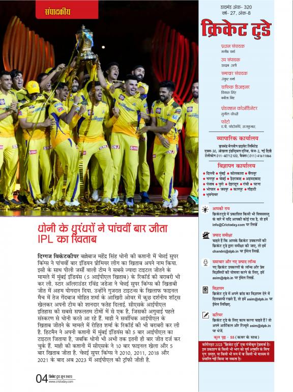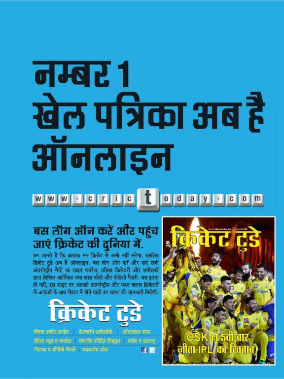 Cricket Today is a monthly cricket magazine in Hindi published by a Delhi-based company, Diamond Magazines. It is one of the most popular cricket magazines in India, and is known for its in-depth coverage of all aspects of the game, including: * Match reports and analysis: Cricket Today provides detailed match reports and analysis of all major cricket matches, including Test matches, One-Day Internationals, and T20 Internationals. The magazine also covers domestic cricket tournaments in India, such as the Ranji Trophy and the Indian Premier League. * Player profiles and interviews: Cricket Today features profiles of top cricket players from India and around the world, as well as interviews with them. These profiles and interviews provide readers with insights into the lives and careers of these players. * Expert columns and commentary: Cricket Today features columns and commentary from leading cricket experts, including former players, coaches, and journalists. These columns and commentary provide readers with different perspectives on the game. * Cricket news and trends: Cricket Today covers the latest cricket news and trends from India and around the world. The magazine also provides analysis of the latest developments in the game. Cricket Today is a valuable resource for anyone who is interested in cricket. It is a must-read for anyone who is looking to stay informed about the latest cricket news and trends, or who is looking for in-depth coverage of all aspects of the game.