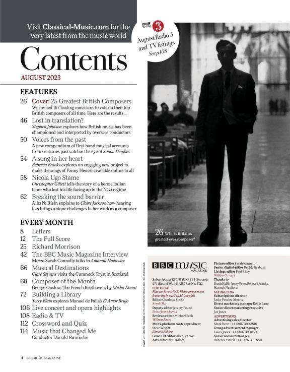 BBC Music Magazine is a monthly classical music magazine published by Immediate Media Company. It was first published in 1992 and is the best-selling classical music magazine in the world. The magazine covers all aspects of classical music, from news and reviews to features and interviews. It also features exclusive content from the BBC Proms and other BBC classical music events. BBC Music Magazine is a popular read for many classical music lovers, and is known for its in-depth coverage and expert analysis. It has helped many classical music lovers discover new music and learn more about the genre. Here are some of the things you can expect from BBC Music Magazine: * News and reviews of classical music * Features on classical music composers, performers, and conductors * Interviews with classical music figures * Exclusive content from the BBC Proms and other BBC classical music events If you're looking for a magazine that will help you stay up-to-date on the latest classical music news and trends, then BBC Music Magazine is a good choice. Subscribe today and start exploring the world of classical music!