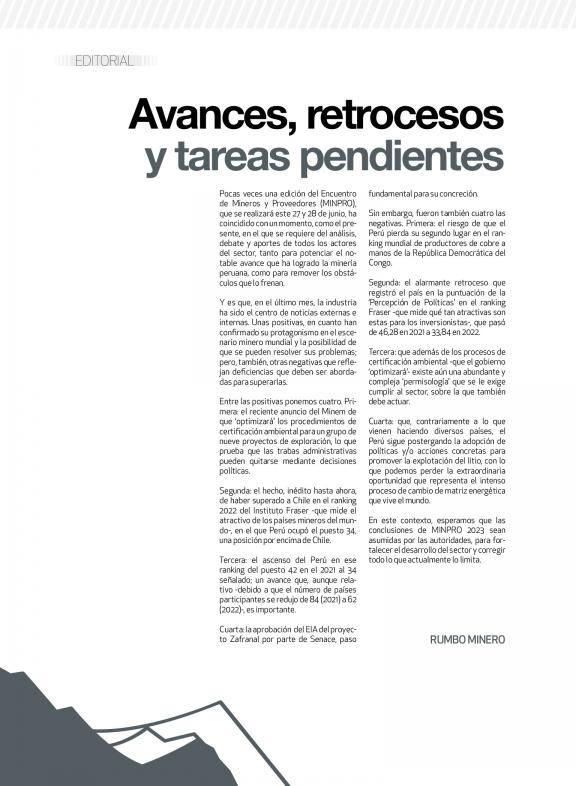 RUMBO MINERO es la revista de Perú y Latinoamérica de negocios de la minería