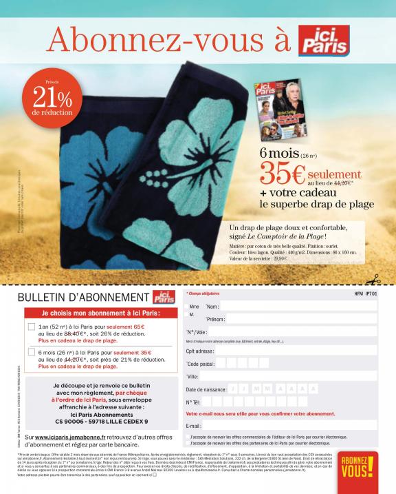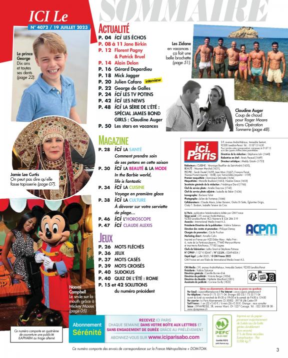 Le magazine Ici Paris vous fait partager la vie publique et privée de celles et ceux qui font l'actualité : exclusivités, interviews, enquêtes (la face cachée du showbiz, les coulisses de la télé) indiscrétions, potins.