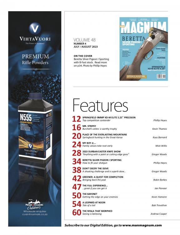 Magnum has a longstanding, worldwide reputation for its authoritative, informative and entertaining features on rifles, shotguns, handguns, black powder firearms, hunting, wing-shooting, hand-loading, African wildlife, history and adventure. Staffed by experts who “tell it as it is”. For the hunter and shooter, Magnum has it all.