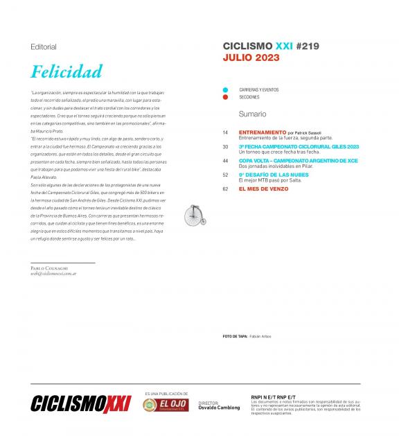 La revista que mes a mes refleja toda la actividad del ciclismo argentino, latino e internacional en todas sus modalidades.
