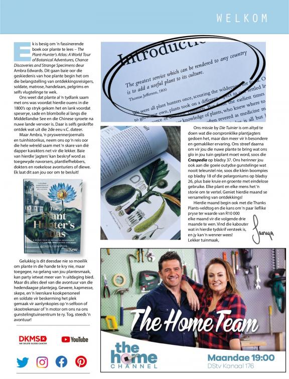 Die Tuinier Tydskrif is daaraan toegewy om tuiniers te inspireer deur praktiese raad te gee en tuinprojekte stap vir stap te wys. Ons maandartikels sluit in tuinontwerp, diepteplantartikels, die kweek van groente en kruie, watertuinmaak, tuinwildlewe en troeteldiere, spesialisplantartikels en veel meer.