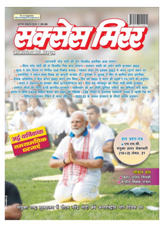Success Mirror - Hindi is a Youth Oriented and This magazine provides - Overview of Latest events and Information which are useful for competitive Exams - Solved Question Paper and Career development Guidelines - Information about Jobs in Govt Sectors