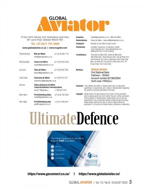 • SAA accidents from 1937 - 1987 • Changes in Store for Pilots during 2013 • Batteries can fly - dreamliners cannot • The value of a good CRM • Final data from Red Bull Stratos freefall. • USS Harry S Truman - Multifunctional taskforce in the Arabian sea • Handover of Botswana Defence Force PC-7 MkII • Nigel Hopkins - Aerobatics and Airliners do go • Denel Pilots spread their wings into Africa • The growing potential of Russian Helicopters in Latin America • Snake on a plane! • The anmanned problem • Airborne Insurance and Aircraft Finance Coporation Student of the year award • Rolls Royce Trent 1000 visited • Gulfstream G280 sets 15 new city-pair speed records as part of the reliability demonstration program And lots more!!