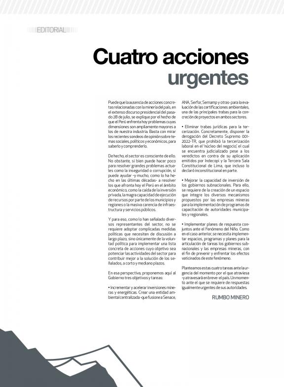 RUMBO MINERO es la revista de Perú y Latinoamérica de negocios de la minería
