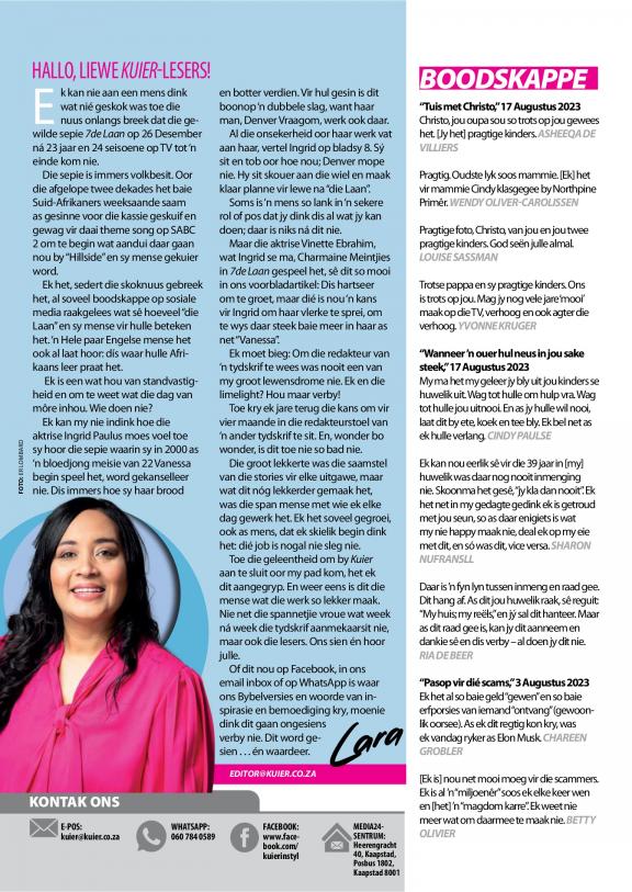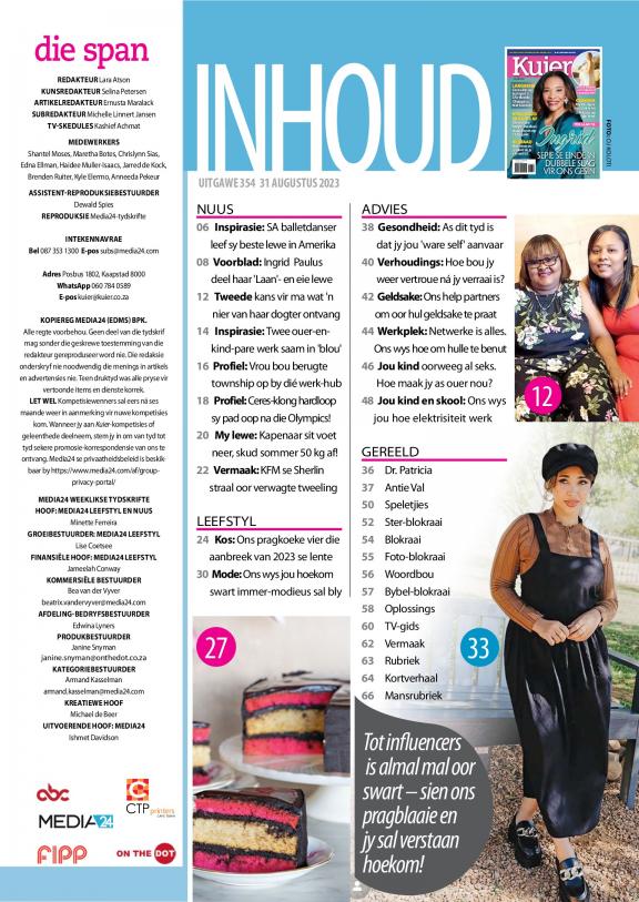 Kuier gee raad oor alles van ouerskap, geldsake, verhoudings en gesondheid tot mode, skoonheid, dekor en kos. Die tydskrif deel inspirerende stories oor mense in die gemeenskap en streef daarna om lesers op te hef en te bemagtig deur die klem te plaas op positiewe stories en suksesvolle rolmodelle. Die projekte is grootliks gemeenskapgebaseerd, met die visie om waarlik ’n verskil in lesers se lewens te maak.