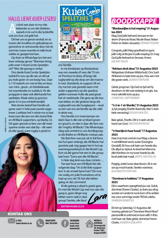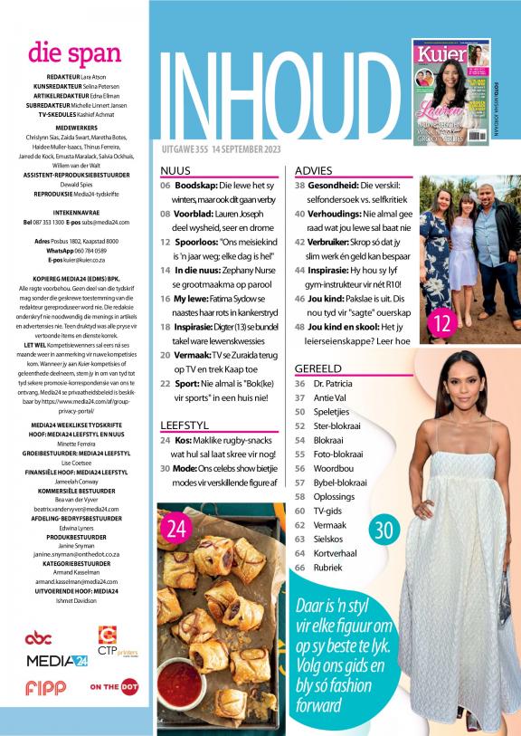 Kuier gee raad oor alles van ouerskap, geldsake, verhoudings en gesondheid tot mode, skoonheid, dekor en kos. Die tydskrif deel inspirerende stories oor mense in die gemeenskap en streef daarna om lesers op te hef en te bemagtig deur die klem te plaas op positiewe stories en suksesvolle rolmodelle. Die projekte is grootliks gemeenskapgebaseerd, met die visie om waarlik ’n verskil in lesers se lewens te maak.