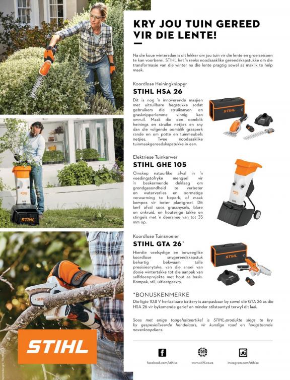 Die Tuinier Tydskrif is daaraan toegewy om tuiniers te inspireer deur praktiese raad te gee en tuinprojekte stap vir stap te wys. Ons maandartikels sluit in tuinontwerp, diepteplantartikels, die kweek van groente en kruie, watertuinmaak, tuinwildlewe en troeteldiere, spesialisplantartikels en veel meer.