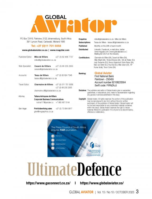 • SAA accidents from 1937 - 1987 • Changes in Store for Pilots during 2013 • Batteries can fly - dreamliners cannot • The value of a good CRM • Final data from Red Bull Stratos freefall. • USS Harry S Truman - Multifunctional taskforce in the Arabian sea • Handover of Botswana Defence Force PC-7 MkII • Nigel Hopkins - Aerobatics and Airliners do go • Denel Pilots spread their wings into Africa • The growing potential of Russian Helicopters in Latin America • Snake on a plane! • The anmanned problem • Airborne Insurance and Aircraft Finance Coporation Student of the year award • Rolls Royce Trent 1000 visited • Gulfstream G280 sets 15 new city-pair speed records as part of the reliability demonstration program And lots more!!