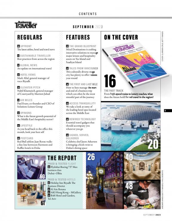 Business Traveller Middle East is the leading magazine for the corporate traveller. We aim to save you money and make your travelling life easier. Each edition has the latest news covering airlines, airports, hotels and car hire companies, regional and international destination features and updates on gadgets, technology and accessories.