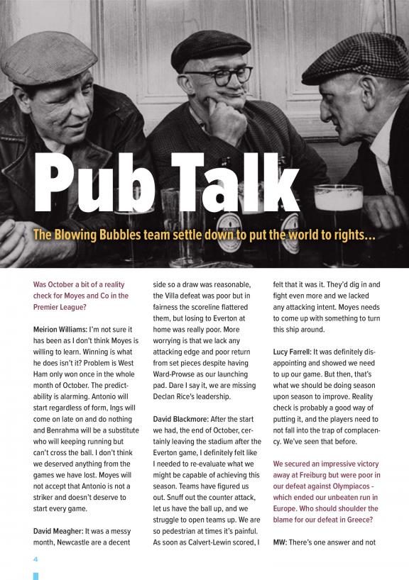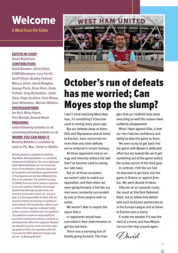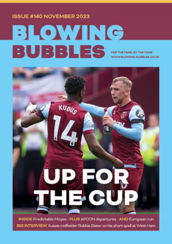 The biggest West Ham United monthly magazine, Blowing Bubbles is edited by a team of journalists and aims to inform, entertain and unite West Ham fans across the globe with our easy-to-read, well-designed & professional magazine. You can have a hard copy of every issue of Blowing Bubbles posted through your door, visit our website for details.