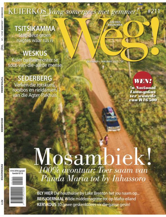 Suid-Afrika se voorste reistydskrif is enige buitelewemens se paspoort tot bekostigbare bestemmings en blyplek in Suidelike-Afrika. Elke uitgawe is volgepak met puik foto’s en gesaghebbende stories oor interessante mense en plekke (en wat om daar te doen). Kamp, voetslaan, fotografie, toerusting, kos, die langpad, en avontuur is ook deel van Weg se DNS. En omdat ons nie freebies aanvaar nie en self vir alles betaal, weet lesers hulle kan ons inligting vertrou. Of jy wil wegbreek vir die naweek of ’n lang vakansie, jou reis begin hier...