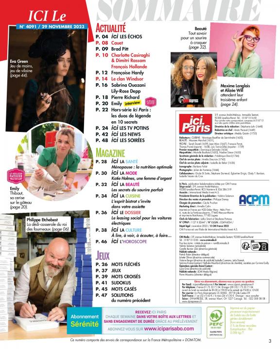 Le magazine Ici Paris vous fait partager la vie publique et privée de celles et ceux qui font l'actualité : exclusivités, interviews, enquêtes (la face cachée du showbiz, les coulisses de la télé) indiscrétions, potins.