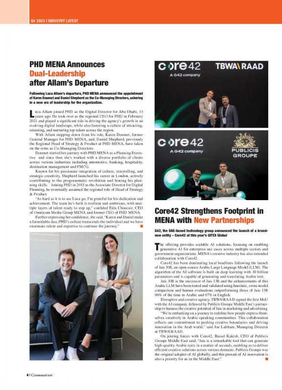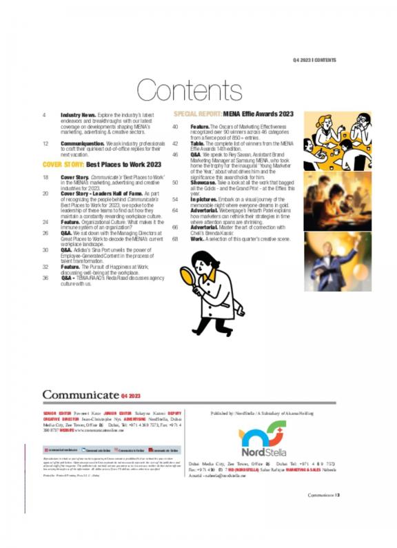Communicate is an established monthly magazine covering media, marketing and advertising in the Arab world and beyond. By providing in-depth news and analysis for professionals in the marketing, advertising, PR, and broader media and communications industries, the title offer an exciting way to reach this community. Communicate is published in association with Advertising Age, widely regarded to be the must-read publication among international advertising, marketing and media professionals