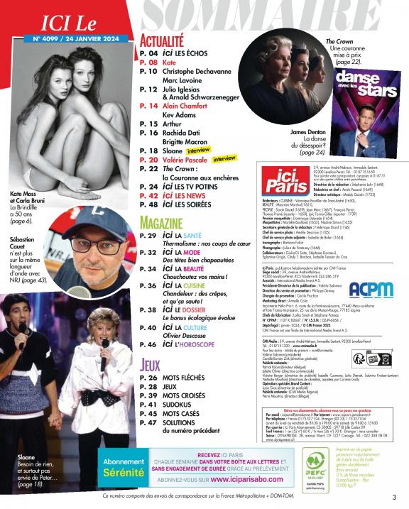 Le magazine Ici Paris vous fait partager la vie publique et privée de celles et ceux qui font l'actualité : exclusivités, interviews, enquêtes (la face cachée du showbiz, les coulisses de la télé) indiscrétions, potins.