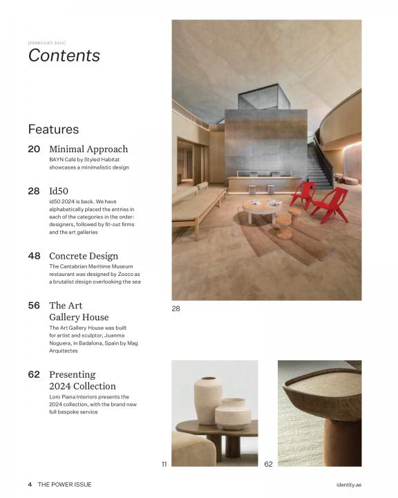 identity is the Middle East's interiors, design and property magazine. Identity is the region's first consumer design, interiors, architecture and property magazine with an exclusively contemporary focus.