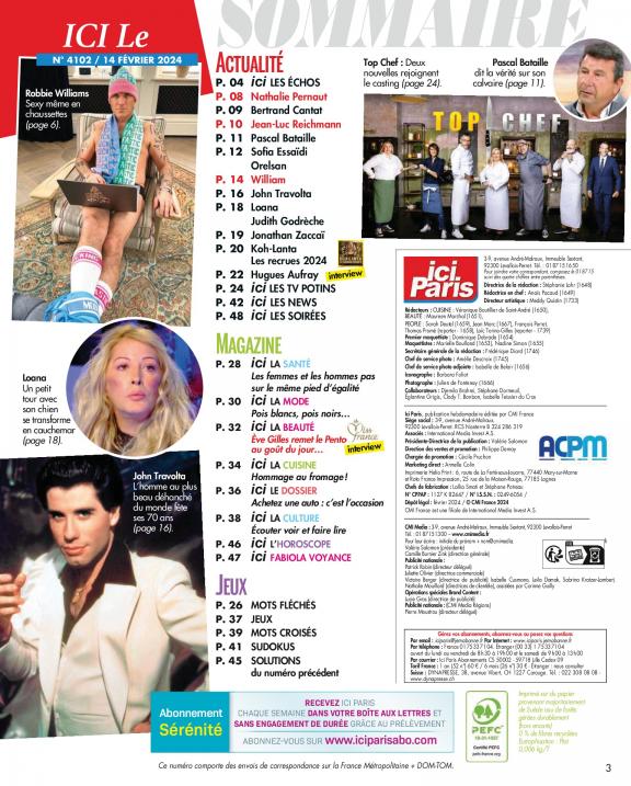 Le magazine Ici Paris vous fait partager la vie publique et privée de celles et ceux qui font l'actualité : exclusivités, interviews, enquêtes (la face cachée du showbiz, les coulisses de la télé) indiscrétions, potins.