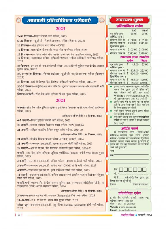 Success Mirror - Hindi is a Youth Oriented and This magazine provides - Overview of Latest events and Information which are useful for competitive Exams - Solved Question Paper and Career development Guidelines - Information about Jobs in Govt Sectors