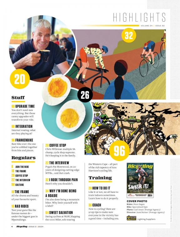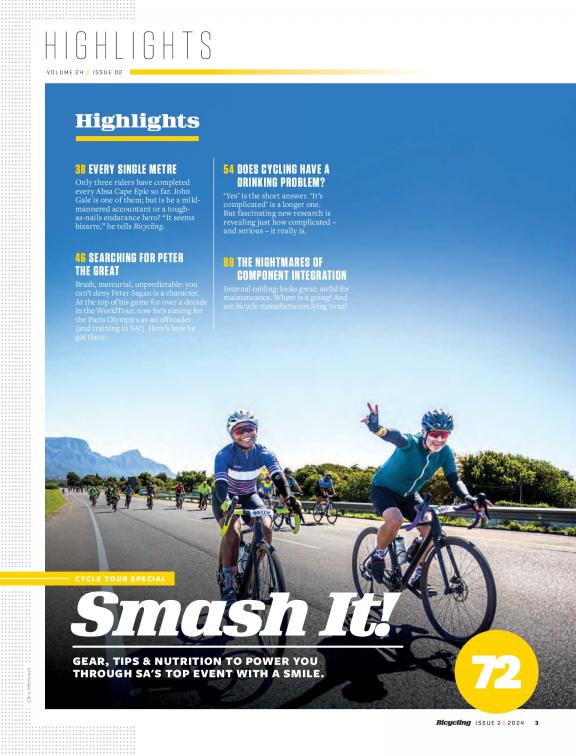 Bicycling is South Africa's leading cycling magazine and is aimed at both road and mountain biking enthusiasts. Launched in February 2003, it is published 10 times a year, targeting the fast-growing and affluent lifestyle cycling market youngsters, adults, professional as well as casual cyclists. The magazine is filled with the best international and local content for every element of the cyclist's life from training techniques and fitness information to inspiring human interest stories, event news, nutrition and motivation. Bicycling is also South Africa's leading tester of bikes and gear with over 30% of the monthly magazine dedicated to the latest reviews so our readers can make the best choices.