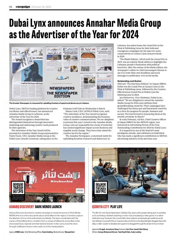 Campaign ME is the Middle East edition of the UK’s leading magazine for the advertising and media industry. Our aim is to champion creativity and best practice and to act as a constructive forum for debate in the midst of an ever-evolving media landscape.