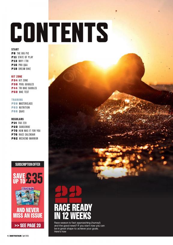 220 Triathlon Magazine is your indispensible triathlon training partner. Each month we feature technique and session advice from the world’s best coaches; test the latest gear to hit the shops; profile the greatest athletes; and hear from our exclusive columnist, Chrissie Wellington. Whether you are a beginner or Ironman, you will race better with 220 Triathlon. Inside every issue: • Essential advice from our experts to improve your multisport performance • We test the latest swim, bike and run equipment • Tri Talk – stay up to date with all the latest triathlon news • Exclusive interviews with world-class triathletes • Training advice – providing you with all the information you need to maximise your potential · Race round-ups –reports and results from UK and abroad.