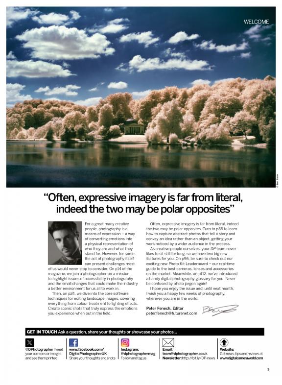The digital photography magazine for enthusiasts and professionals launched in 2002, Digital Photographer is the ultimate monthly photography magazine, delivering indispensable, practical and hands-on shooting advice. Aimed at digital enthusiasts and professional photographers, Digital Photographer features the latest high-end kit reviews, expert interviews, practical shooting advice and image-editing tutorials to help you become a better photographer. We also showcase a selection of images from DP readers every month – the ideal launch pad for your career. Please note: Digital versions of the magazines do not include the cover mount items or supplements that you would find on printed editions.