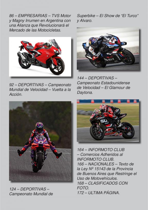 Revista líder del motociclismo argentino y latinoamericano. Mas de 40 años de vigencia. La publicación de la moto y de los motociclistas profesionales y amateurs.