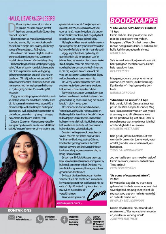 Kuier gee raad oor alles van ouerskap, geldsake, verhoudings en gesondheid tot mode, skoonheid, dekor en kos. Die tydskrif deel inspirerende stories oor mense in die gemeenskap en streef daarna om lesers op te hef en te bemagtig deur die klem te plaas op positiewe stories en suksesvolle rolmodelle. Die projekte is grootliks gemeenskapgebaseerd, met die visie om waarlik ’n verskil in lesers se lewens te maak.