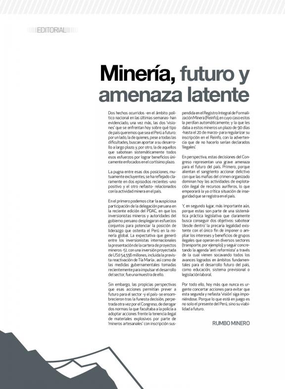 RUMBO MINERO es la revista de Perú y Latinoamérica de negocios de la minería