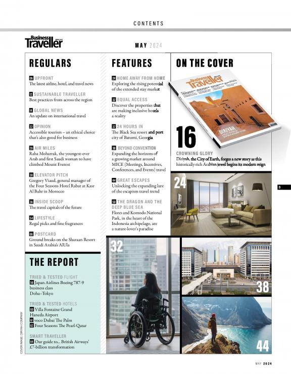 Business Traveller Middle East is the leading magazine for the corporate traveller. We aim to save you money and make your travelling life easier. Each edition has the latest news covering airlines, airports, hotels and car hire companies, regional and international destination features and updates on gadgets, technology and accessories.