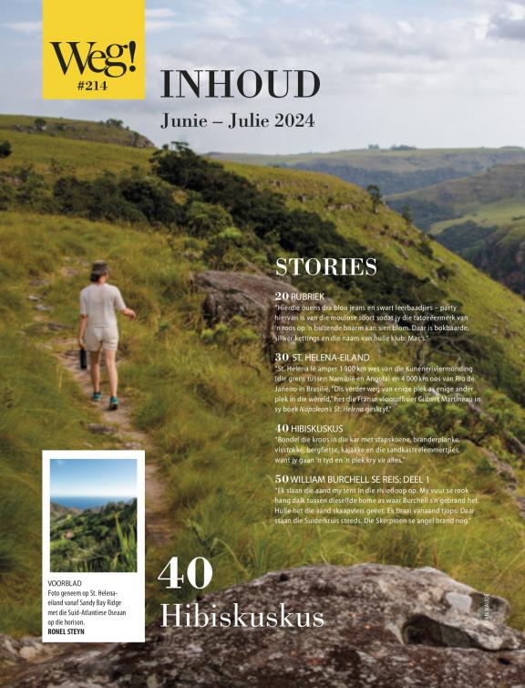 Suid-Afrika se voorste reistydskrif is enige buitelewemens se paspoort tot bekostigbare bestemmings en blyplek in Suidelike-Afrika. Elke uitgawe is volgepak met puik foto’s en gesaghebbende stories oor interessante mense en plekke (en wat om daar te doen). Kamp, voetslaan, fotografie, toerusting, kos, die langpad, en avontuur is ook deel van Weg se DNS. En omdat ons nie freebies aanvaar nie en self vir alles betaal, weet lesers hulle kan ons inligting vertrou. Of jy wil wegbreek vir die naweek of ’n lang vakansie, jou reis begin hier...
