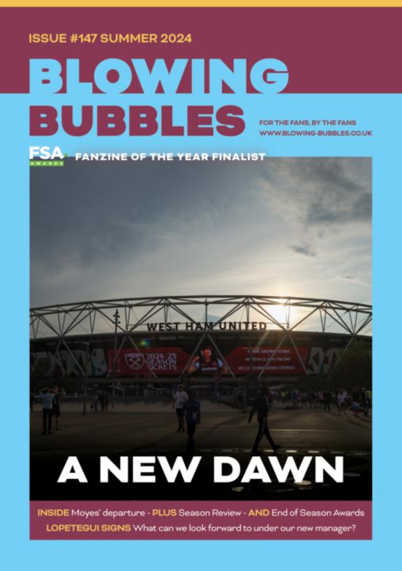 The biggest West Ham United monthly magazine, Blowing Bubbles is edited by a team of journalists and aims to inform, entertain and unite West Ham fans across the globe with our easy-to-read, well-designed & professional magazine. You can have a hard copy of every issue of Blowing Bubbles posted through your door, visit our website for details.