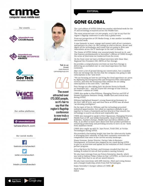 For any serious IT player in the Middle East, there are key market sectors that are easy to list – government, energy, banking, education, health, hospitality and so on. One key question is how do you use your marketing spend effectively to reach and influence the key decision makers in these markets? Plan and influence their strategies? For two decades, Computer News Middle East (CNME) has been the link between the regional IT player and these key target markets. It has driven the messages of local relevance, business benefit and technology into focus for these decision makers. The magazine covers all the important market sectors in depth, combining interviews, best practice case studies, news analysis and market trends through focused sections. Add to this analysis of global news, exclusive interviews with global IT players from Silicon Valley to Taipei and you have an authoritative route to market.