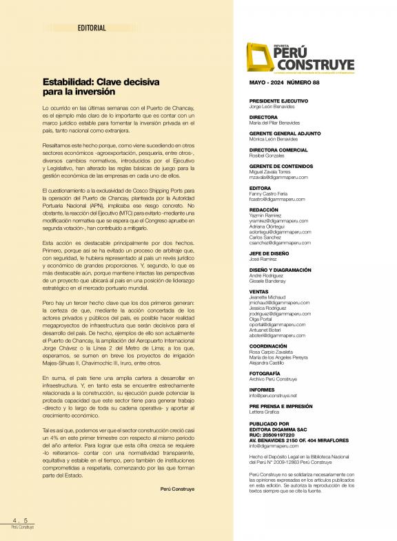 PERÚ CONSTRUYE es la revista que refleja la actividad de la construcción en Perú
