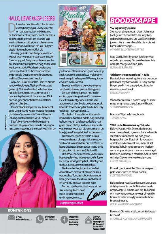 Kuier gee raad oor alles van ouerskap, geldsake, verhoudings en gesondheid tot mode, skoonheid, dekor en kos. Die tydskrif deel inspirerende stories oor mense in die gemeenskap en streef daarna om lesers op te hef en te bemagtig deur die klem te plaas op positiewe stories en suksesvolle rolmodelle. Die projekte is grootliks gemeenskapgebaseerd, met die visie om waarlik ’n verskil in lesers se lewens te maak.